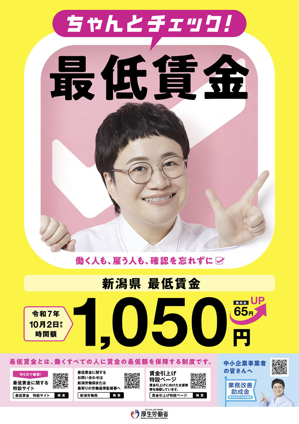 お知らせ 新潟県の最低賃金が改定されました。 2025/10/02 運営より 令和7年10月2日から新潟県最低賃金が時間額1,050円になりました。 事業者のみなさまも、お仕事を探されている求職者のみなさまも、最低賃金の内容を正しく把握しておくことが大切です。 雇用や就業に関わる大切な変更です。最新の金額をご確認ください。 詳細はコチラ ◀ 次の記事へ 前の記事へ ▶ ◀ お知らせ一覧へ お知らせ 新潟県の最低賃金が改定されました。