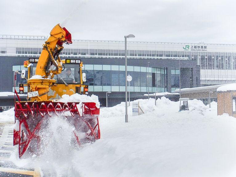 主に上越妙高駅西側の地区で業務を行っており、できる限り通勤・通学の時間帯を避けた午前2時から6時までに除雪をしています。
