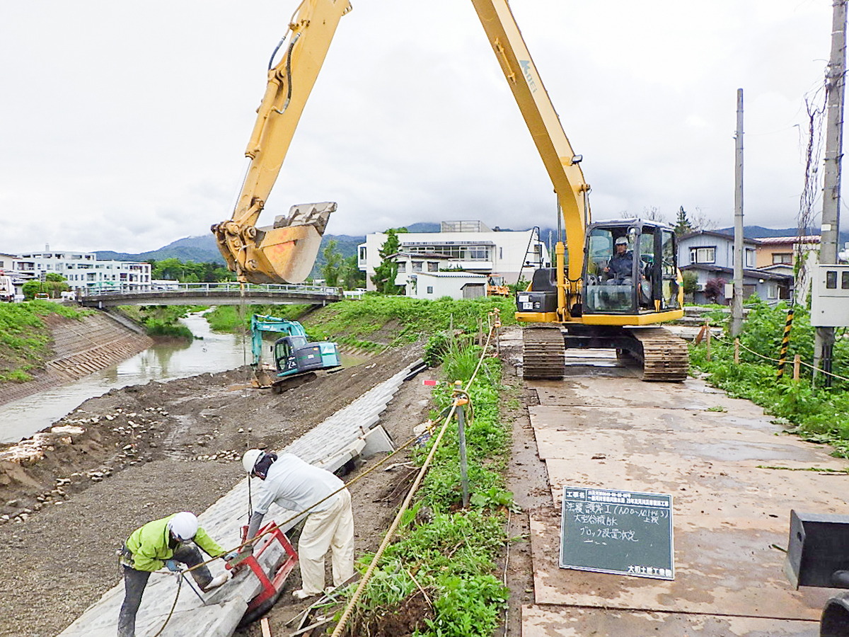 当社の土木・建築工事は、新潟県や上越市から受注する道路・河川・下水道・災害復旧工事などの公共工事が中心です。
